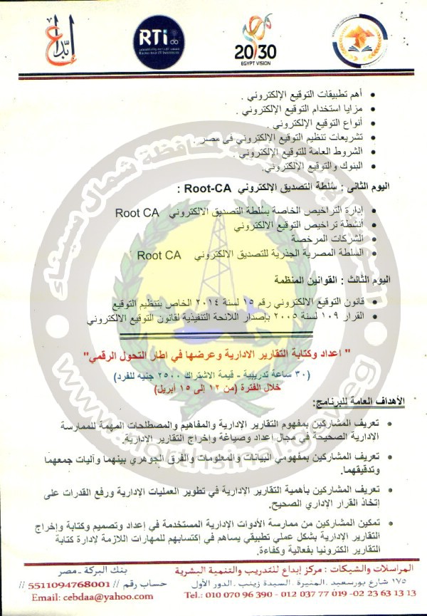يقوم " مركز إبداع للتدريب والتنمية البشرية " بالتعاون مع " مؤسسة مصرايم للخدمات والتنمية " و " معهد الإذاعة والتليفزيون " بعقد مجموعة ورش لتحول المؤسسة رقمياً .