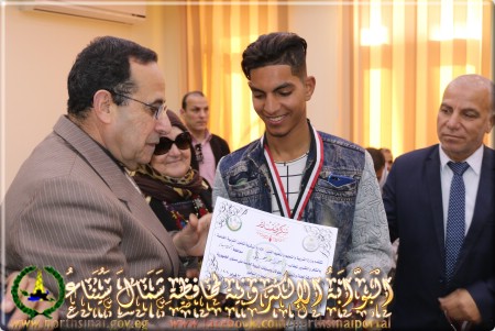 هذا .. وقد كرم المحافظ الطلاب الفائزين بمراكز متقدمة على مستوى الجمهورية بمنحهم شهادات تقدير والكأس ، ومنهم : الطالب أسامة صالح بمدرسة التربية الخاصة الحاصل على المركز الثالث في ألعاب القوى ( وثب طويل ) ، الطالب يحيى طالب بمدرسة التربية الفكرية الحاصل على المركز الثالث على مستوى الجمهورية في ألعاب القوى ( دفع جلة ) ، وكذا فريق كرة القدم الخماسية الحاصل على المركز الثالث على مستوى الجمهورية .