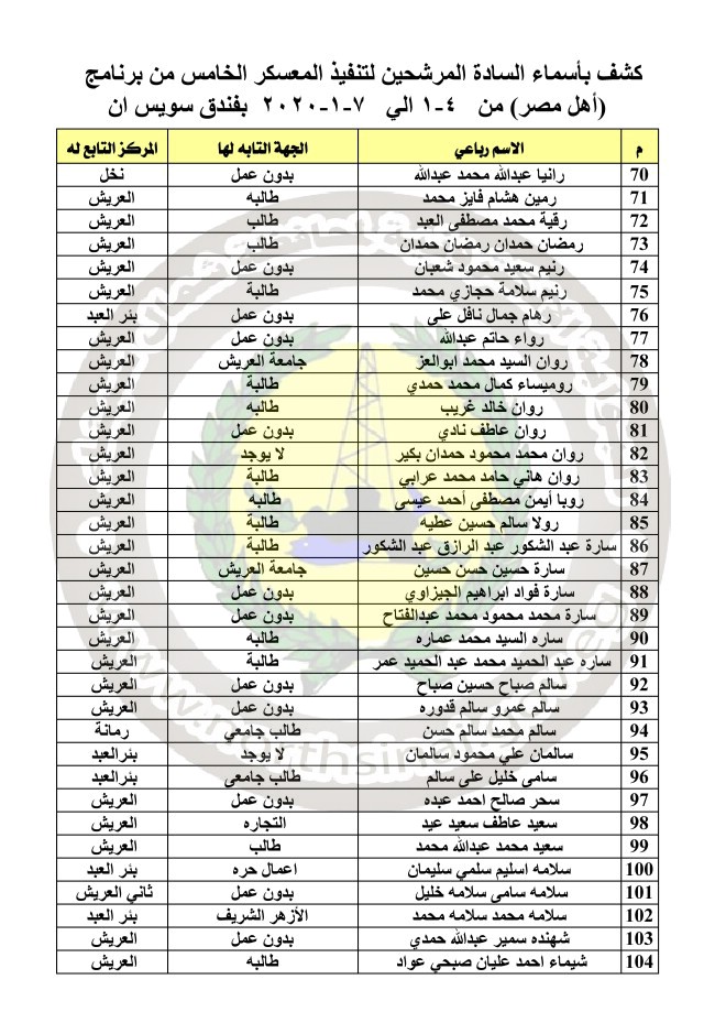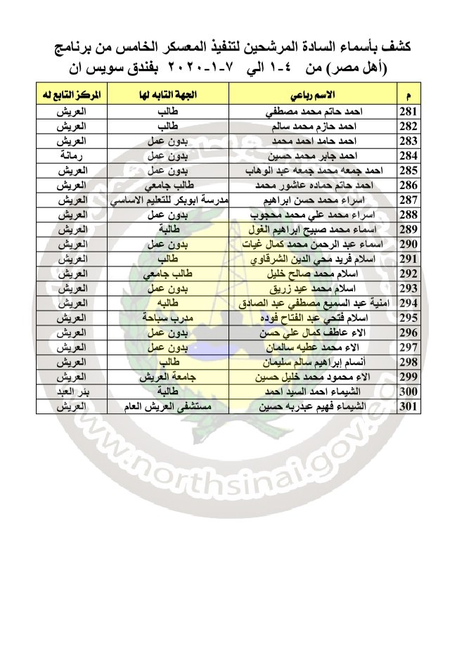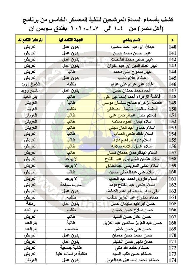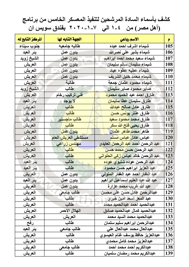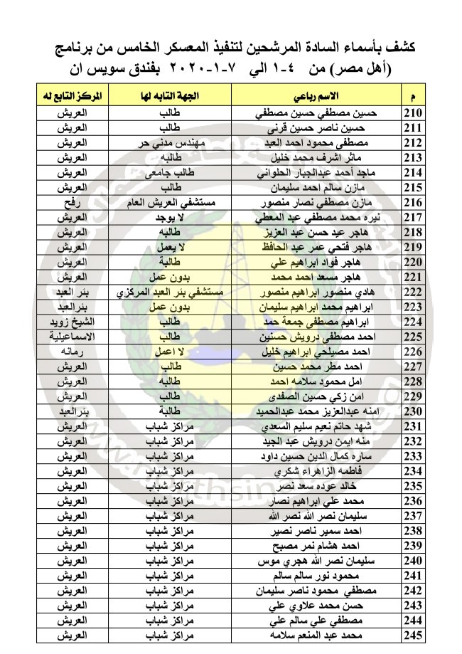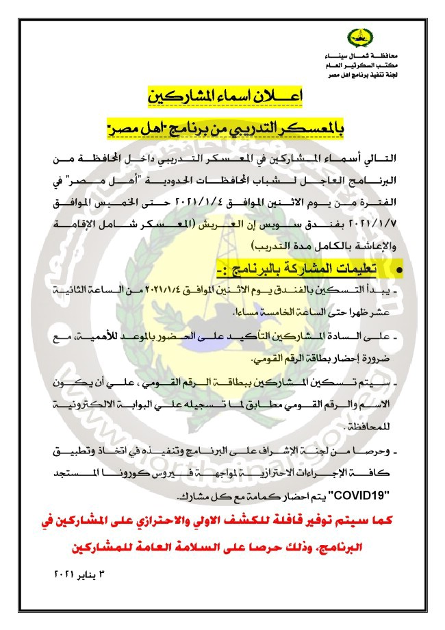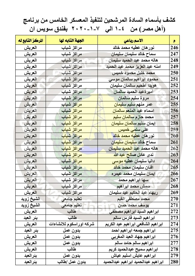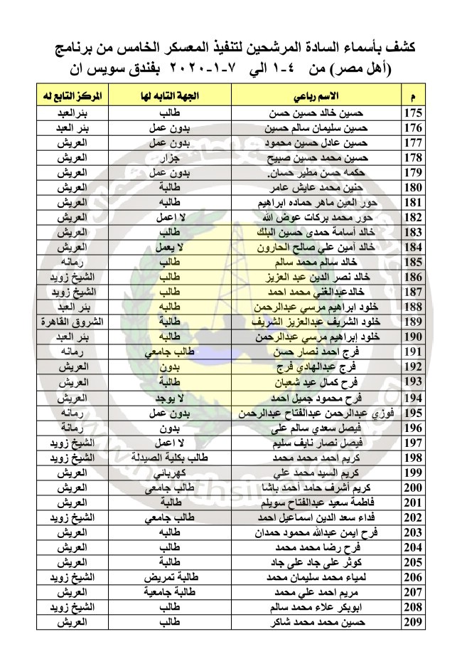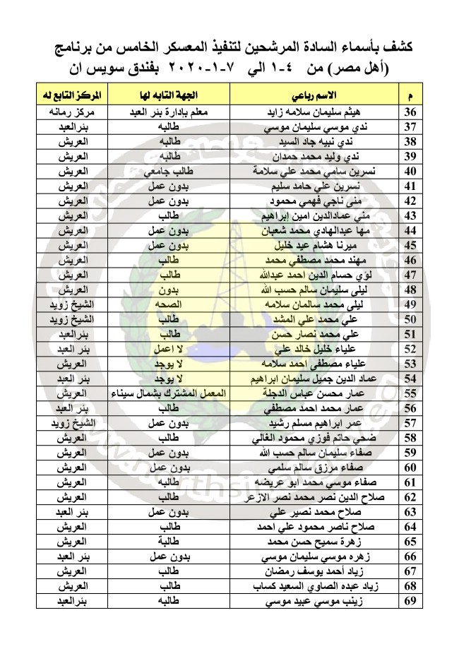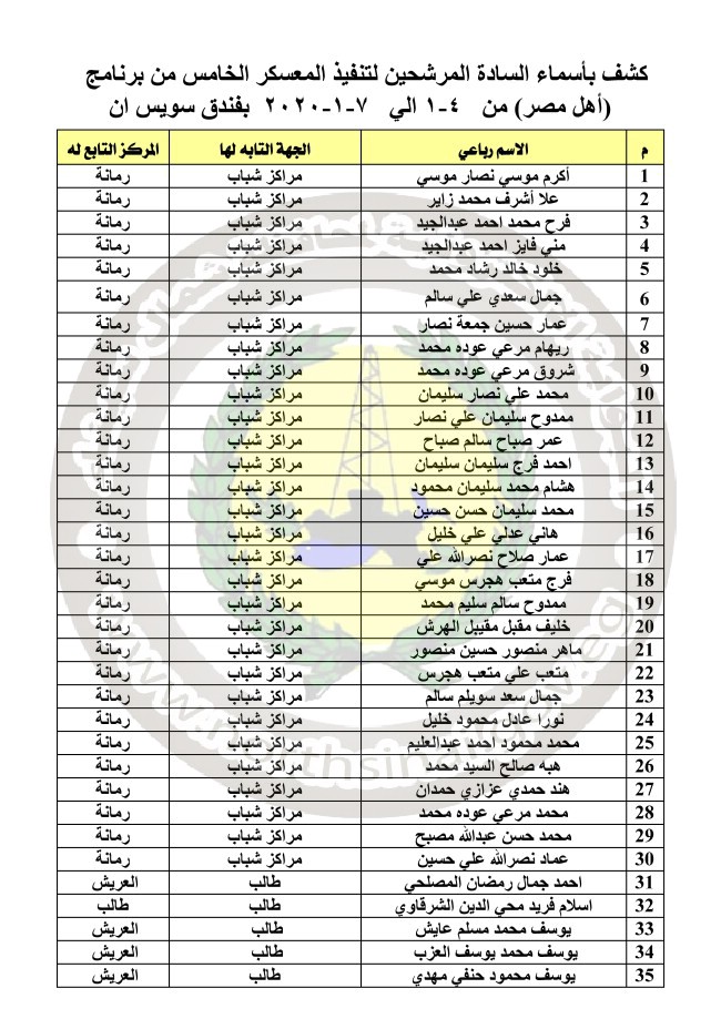 اعلان اسماء المشاركين بالمعسكرالتدريبي الخامس من برنامج " اهل مصر"