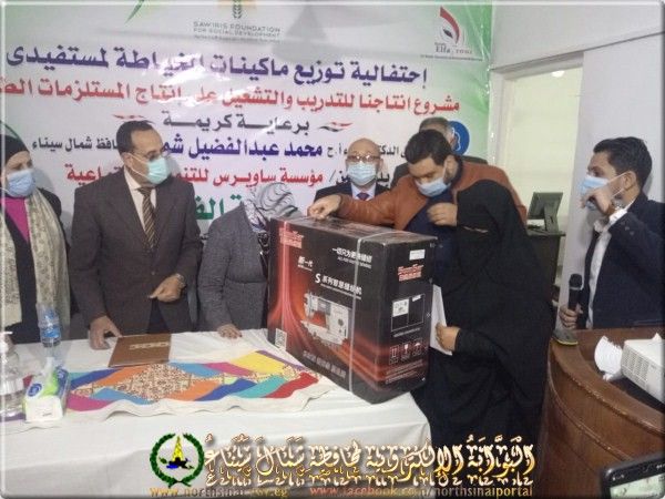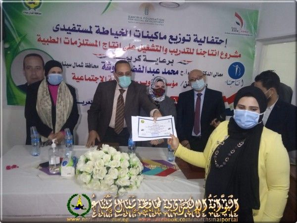 افتتح الدكتور محمد عبد الفضيل شوشة محافظ شمال سيناء أول خط لإنتاج المستلزمات الطبية التابع لمشروع " إنتاجنا " بجمعية الفيروز للخدمات البيئية والاجتماعية والاقتصادية بالعريش .