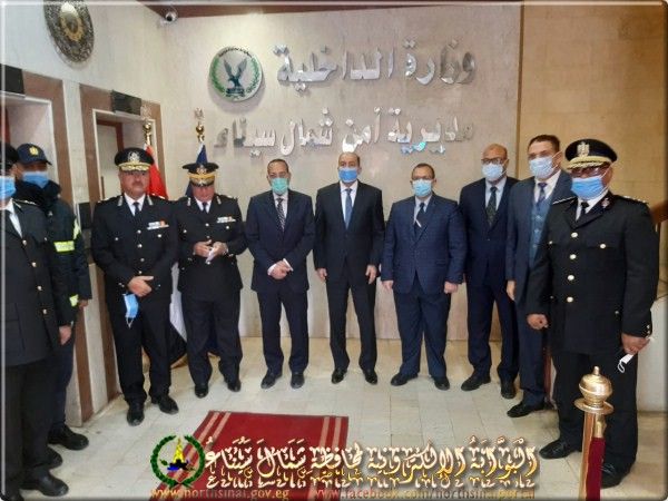 توجه الدكتور محمد عبد الفضيل شوشة محافظ شمال سيناء ( اليوم ) .. يرافقه اللواء هشام الخولى نائب المحافظ إلى مقر مديرية أمن شمال سيناء لتقديم التهنئة بالذكرى 69 لعيد الشرطة .. حيث كان في استقباله اللواء أشرف ربيع مدير أمن شمال سيناء وقيادات الشرطة ، وقد هنأهم المحافظ بهذه المناسبة وقدم التهنئة لجميع قيادات وضباط وأفراد الشرطة باسمه وباسم أبناء شمال سيناء .