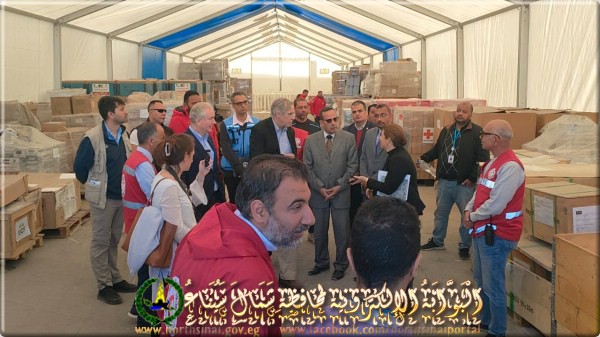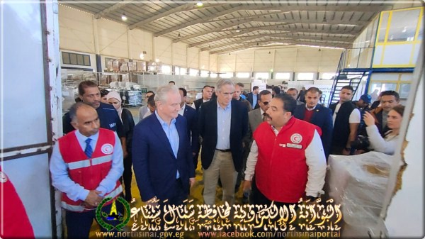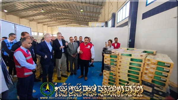 تفقد وفد أمريكي رفيع المستوي برفقة اللواء دكتور محمد عبد الفضيل شوشة، محافظ شمال سيناء، الجمعة، المساعدات الخاصة بقطاع غزة في المخازن اللوجستية التابعة للهلال الأحمر المصري في مدينة العريش.