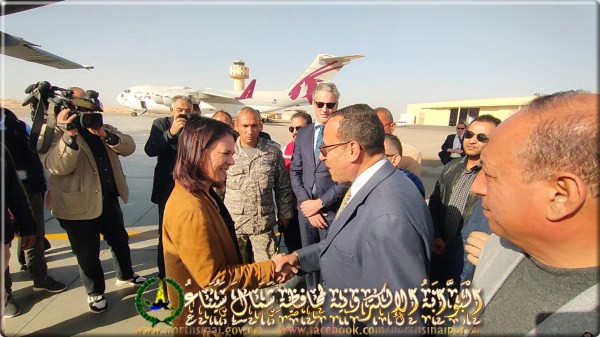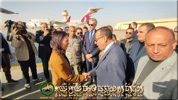 استقبل اللواء دكتور محمد عبد الفضيل شوشة محافظ شمال سيناء ،أنالينا بيربوك،وزيرة الخارجية الألمانية خلال وصولها إلى مطار العريش الدولي،علي متن طائره قادمة من القاهرة،في حضور اللواء مصطفى محمد مصطفى رئيس الإدارة المركزية لمكتب المحافظ ،لطفي غيث مدير العمليات في الهلال الأحمر المصري ،الدكتور طارق شوكه وكيل وزارة الصحة بالمحافظة.