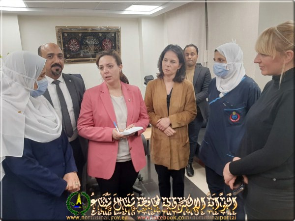زارت أنالينا بيربوك، وزيرة الخارجية الألمانية، اليوم الثلاثاء، الجرحى الفلسطينيين أثناء تلقيهم العلاج في مستشفي العريش العام، برفقة اللواء دكتور محمد عبد الفضيل شوشة محافظ شمال سيناء، الدكتور طارق شوكة، وكيل وزارة الصحة بالمحافظة، الدكتور احمد منصور، مدير عام المستشفى.