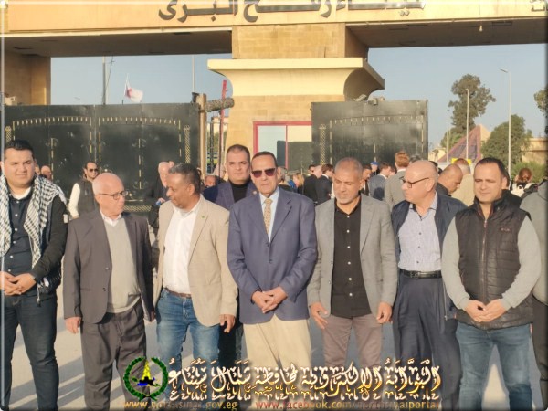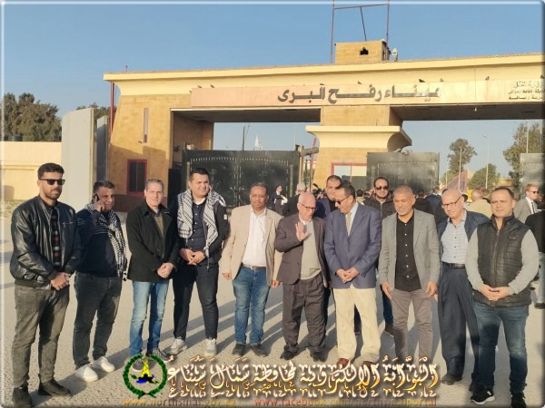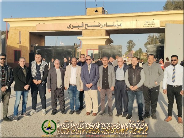 في حضور اللواء الدكتور محمد عبد الفضيل شوشة- محافظ شمال سيناء، استقبل المهندس أمين جودة- رئيس نقابة المهندسين الفرعية بسيناء، والمهندس سليمان محمود سليمان- عضو مجلس إدارة نقابة المهندسين بشمال سيناء، وفد نقابة المهندسين المصاحب لقافلة الإغاثة برئاسة المهندس محمد عباس- رئيس نقابة المهندسين الفرعية بأسوان، وعضوية كل من المهندس مجدي خالد، والمهندس أحمد سليمان- عضوي المجلس الأعلى للنقابة، والمهندس محمد عبد الحميد كامل- عضو الجمعية العمومية، وذلك على معبر رفح البري، بعد أن اصطحب الوفد الهندسي قافلة الإغاثة المكونة من خمس شاحنات تضم شاحنتين مواد غذائية وشاحنتين ملابس وبطاطين وشاحنة مستلزمات طبية من القاهرة إلى رفح.