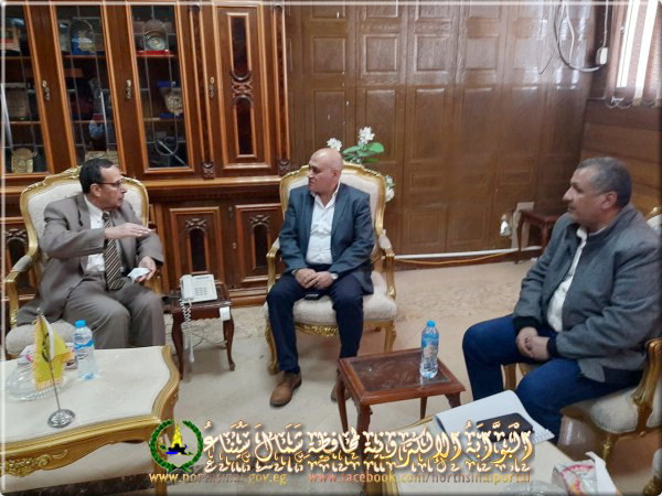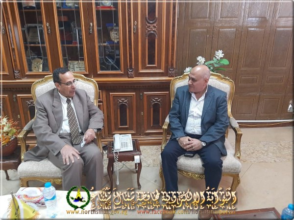 استقبل اللواء دكتور محمد عبد الفضيل شوشة، محافظ شمال سيناء، اللواء وائل مصطفي حسن رئيس جهاز تعمير سيناء، في مكتبه بالعريش، خلال زيارته الي المحافظة، في حضور المهندس ناجي إبراهيم، مدير عام منطقة تعمير سيناء.