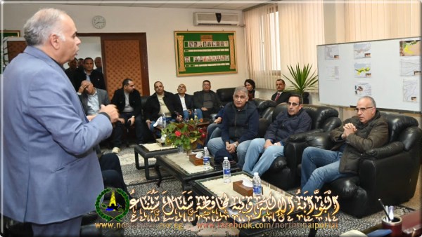 و التقى الوزير والمحافظ بالعاملين بقطاع الموارد المائية والري والبنية القومية بشمال سيناء ، حيث أكدا على ضرورة الاستمرار فى بذل الجهد فى متابعة الأعمال الجاري تنفيذها ضمن مشروع تنمية شمال سيناء والمسارات الناقلة من محطة الحمام باعتبارها أحد المشروعات الكبرى لخدمة قطاع المياه والاستصلاح الزراعي.